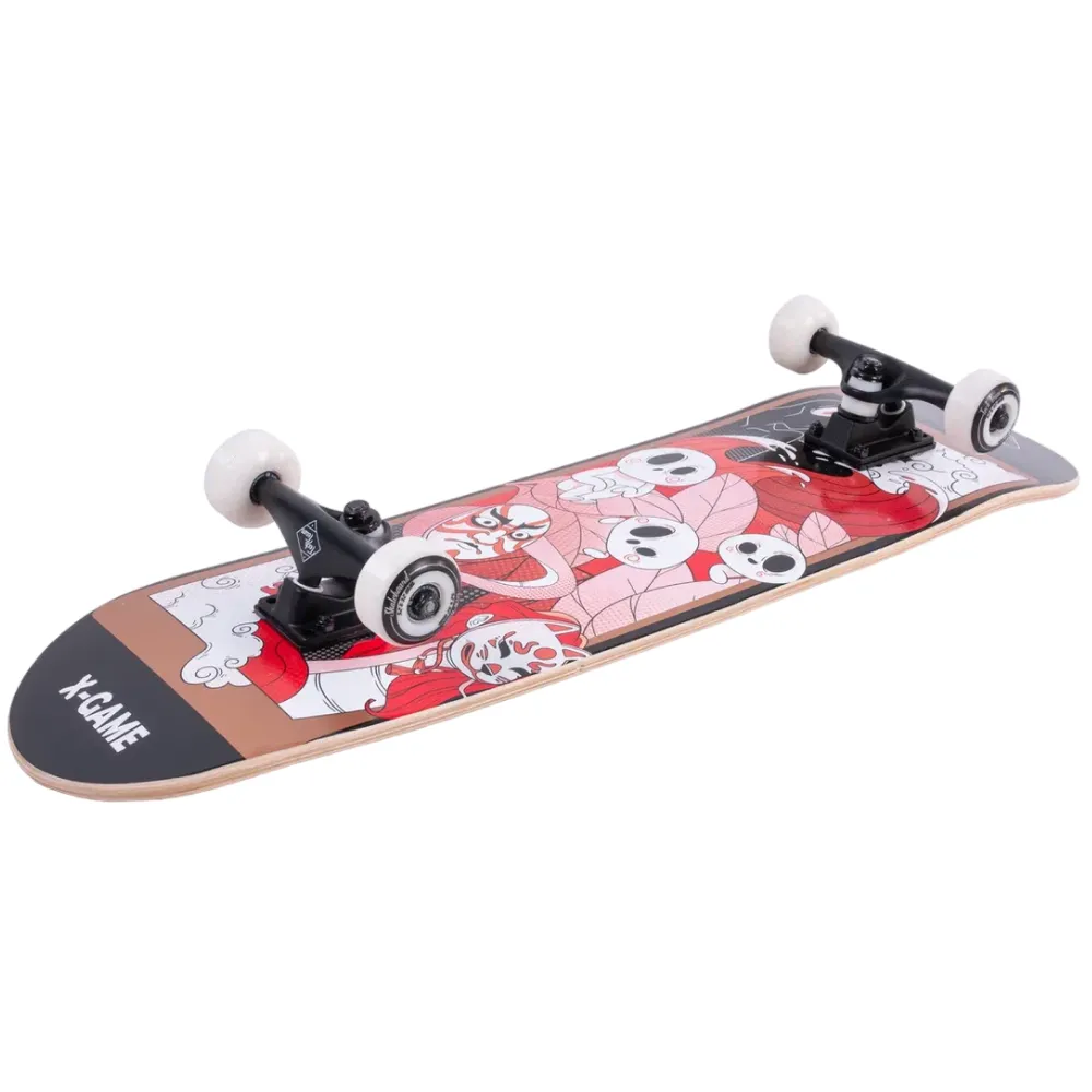 Скейтборд Tech Team X-Game 2024 красного цвета - это идеальное сочетание стиля и функциональности. Дека, изготовленная из 9 слоев прочного китайского клена, имеет размер 31”х 8”. Верхняя часть деки покрыта черной шкуркой 80AB для отличной сцепляемости, а нижняя украшена стильным принтом в японском стиле в красных тонах - подчеркивающим ваш индивидуальный стиль. Материал колес - PU 52x32 mm, с жесткостью 85А, обеспечивает отличное управление и стабильность на любой поверхности. Скейтборд оснащен подшипниками стандарта ABEC 9 для гладкой и быстрой езды. Дека имеет двойной концевой загиб (Double Kick), что делает его подходящим для исполнения разнообразных трюков. Этот скейтборд будет прекрасным выбором как для новичков, так и для опытных райдеров.