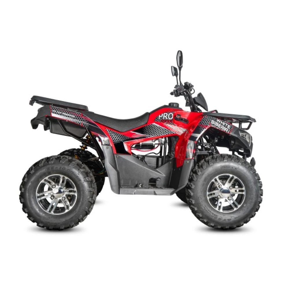Электроквадроцикл WHITE SIBERIA SNEG PRO MAX 6000 W – супермодель с современной подвеской независимого типа (рычажной) и балкой, которая регулируется понравилась райдерам высоким качеством сборки. Техника устойчива на дороге благодаря четырем оригинальным колесам (23*7,0-10 (180/90-10) и 22*10,00-10 (250/60-10) и идеальному весу 263 кг.