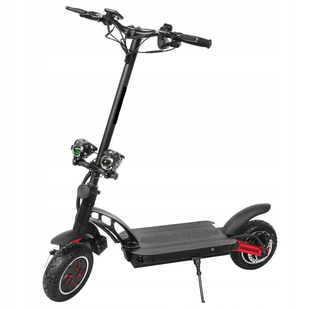 Максимальная скорость техники 60 км/час обеспечивается благодаря надежному двигателю мощностью 2400 Вт. Доступная цена является основным достоинством техники. Производитель акцентирует внимание на повышенной безопасности при поездках. Модель оснащена современными дисковыми тормозами. Руль может регулироваться в зависимости от роста пользователя. Фирменная LED-подсветка предназначена для освещения дороги в темное время суток. Резиновые насадки на руль имеют специальное покрытие для лучшего сцепления с руками.