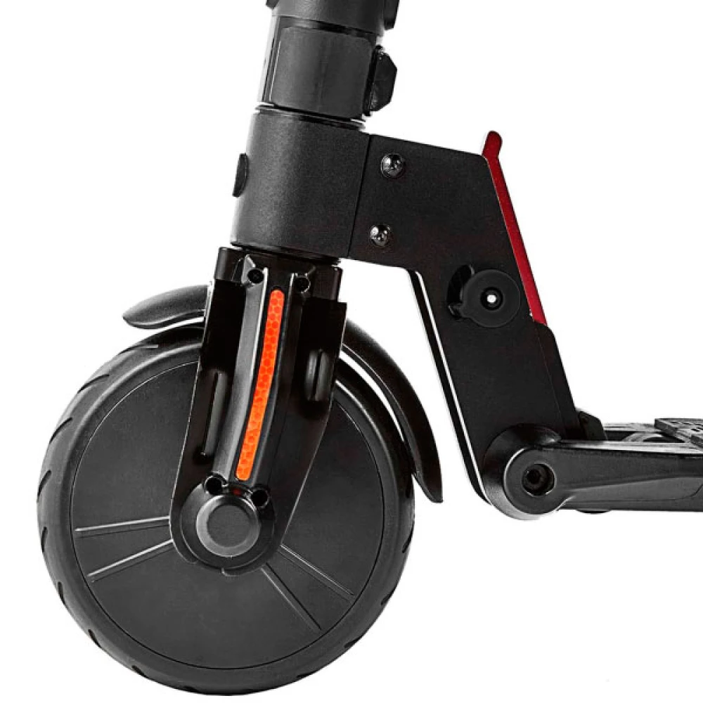 Электросамокат очень легко складывается, благодаря корпусу из алюминия он легкий. Удобно хранить, перевозить в автомобиле и переносить в руках в сложенном состоянии. Благодаря своей конструкции электросамокат занимает очень мало места в сложенном состоянии и у вас не возникнет сложности при необходимости передвигаться с ним в маршрутке. Модель оборудована светоотражателями, благодаря которым на самокате можно передвигаться в темное время суток.