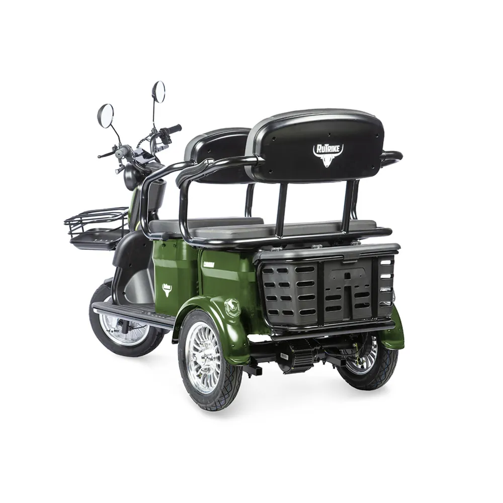 Трицикл Rutrike Караван зеленый – серьезная вместительная техника для туристического бизнеса и семейных пар. Оснащена пассажирским и водительским вместительным сиденьем, не стесняющим в движениях, обеспечивающих удобство передвижения.