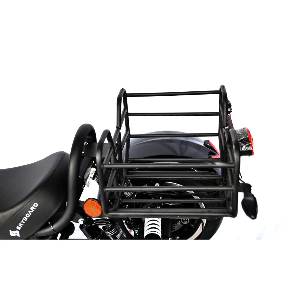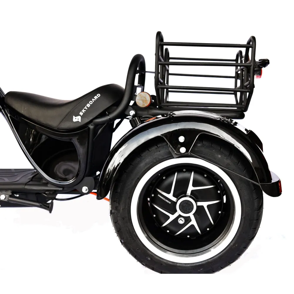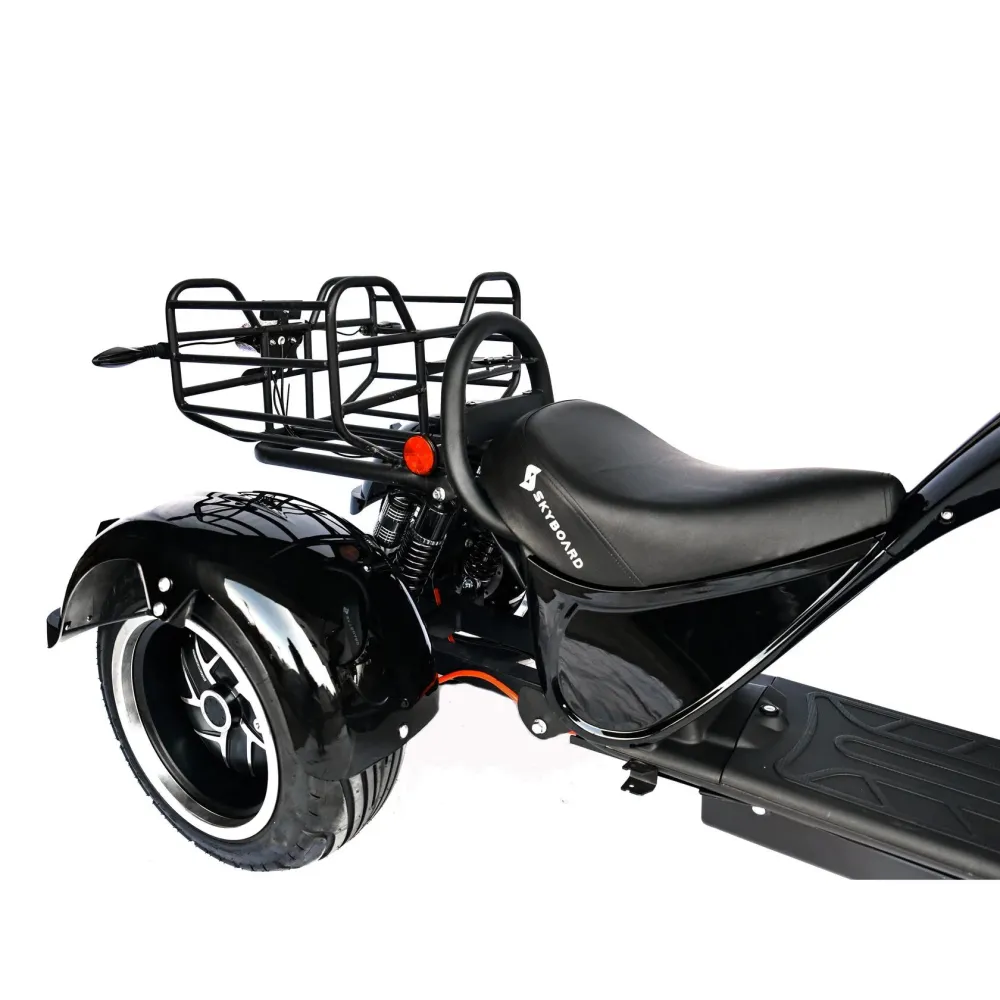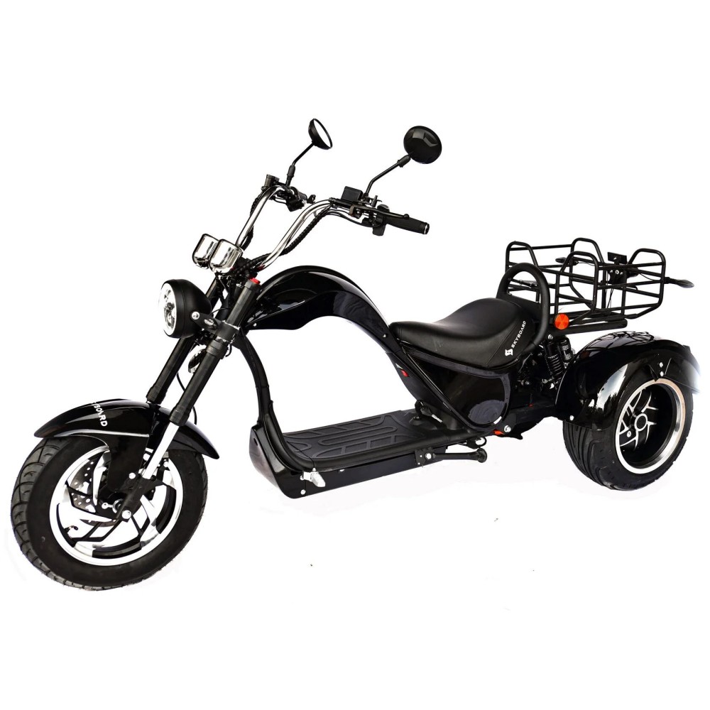 Трехколесный гибрид рассчитан для езды в пределах города и частного сектора. При мощности мотор-колес в 2000 Вт каждое модель способна развить скорость до 73 км/час и преодолеть расстояние до 49 км. Техника оснащена объемной корзиной, удобной для клади. Своевременность остановки гарантирована наличием профессиональной гидравлической тормозной системой. Удобство движения обеспечены большим комфортабельным седлом, повторяющим анатомические части тела и широкой платформой для ног. Практический опыт пользователей доказывает, усталость и проблемы с позвоночником при дальней езде исчезают.