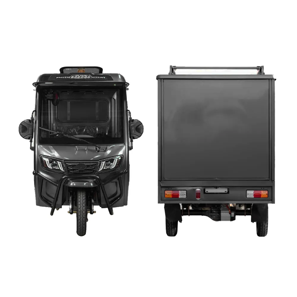 Электротрицикл Rutrike КАРГО Кабина Дуал в стильном матовом черном цвете представляет собой новое слово в сфере грузовых перевозок. Это уникальное, экологически чистое и высокопроизводительное решение для перевозки грузов в городских условиях.