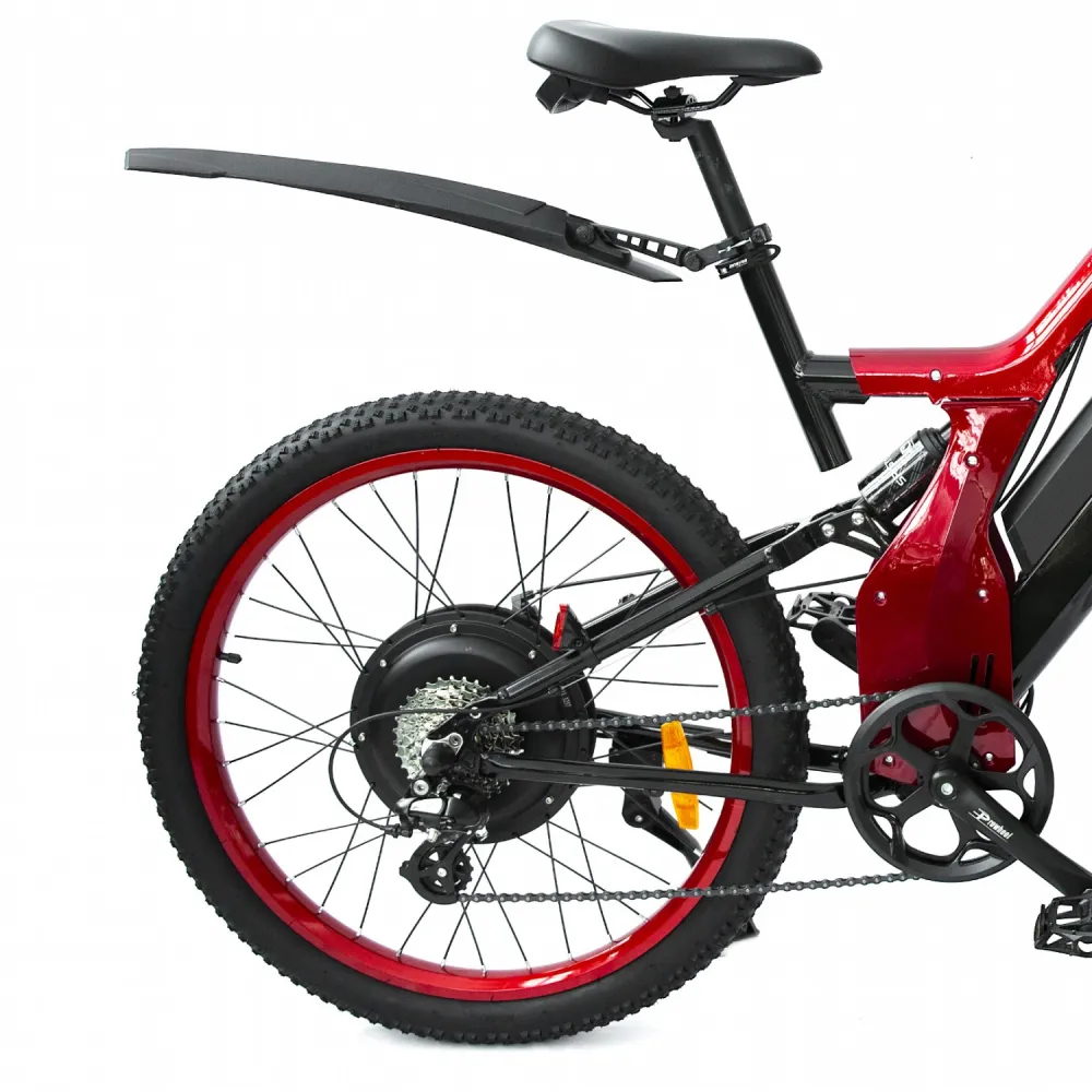 Представляем вашему вниманию электровелосипед Elbike TURBO R65 премиум класса. Значительный размер колёс в 26 дюймов, яркий красный цвет, мощность мотора 500 Вт. Электровелосипед буквально кричит о том, что готов ездить в экстремальных условиях.