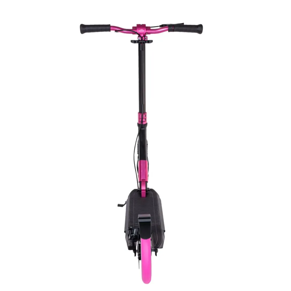 Техника предназначена для эксплуатации в пределах городской местности. Ростовые параметры ездока при возрасте 6-12 лет начинаются от 135 см. Максимальная грузоподъемность – 50 кг. Рулевая часть широкая, максимально удобная. Изготовлена из надежного ударопрочного материала, не деформирующегося при механическом воздействии. Грипсы – прорезиненные и нескользящие. В нижней части рулевой стойки имеются передние амортизаторы.